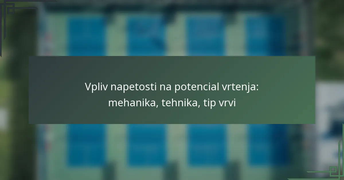 Vpliv napetosti strun na potencial vrtenja je ključnega pomena v športih z rekviziti, saj neposredno vpliva na interakcijo med strunami in žogo. Višja napetost običajno izboljša nadzor in generacijo vrtenja, medtem ko lahko nižja napetost poveča moč in udobje, vendar lahko zmanjša učinkovitost vrtenja. Z razumevanjem odnosa med tipom strun, napetostjo in tehniko lahko igralci optimizirajo svoje nastope in ustvarijo bolj zahtevne udarce za svoje nasprotnike.