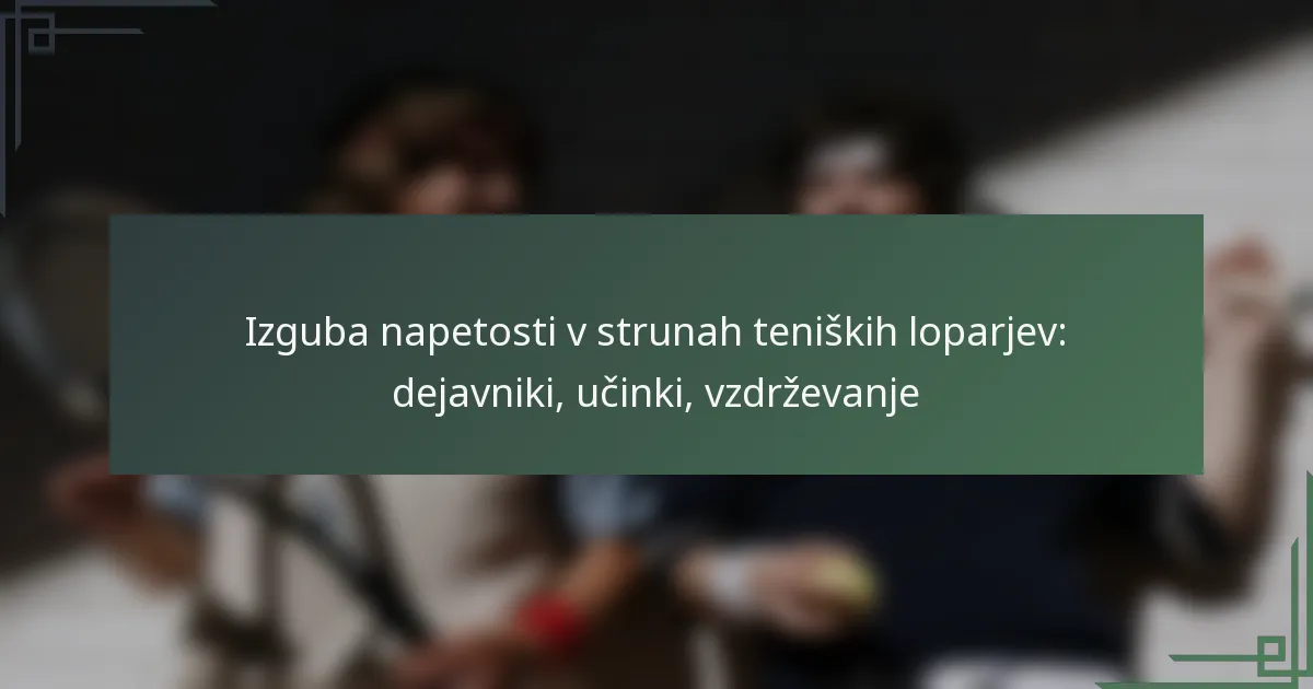 Izguba napetosti v strunah teniških loparjev je kritičen vidik, ki lahko vpliva na igralčevo predstavo na igrišču. Dejavniki, kot so material strun, okoljski pogoji in pogostost igranja, prispevajo k temu pojavu, zato je za igralce nujno, da razumejo in upravljajo te elemente. Z izvajanjem rednih vzdrževalnih praks, vključno z pravočasnim prevezovanjem in pravilnim shranjevanjem, lahko igralci izboljšajo delovanje svojega loparja in podaljšajo njegovo življenjsko dobo.